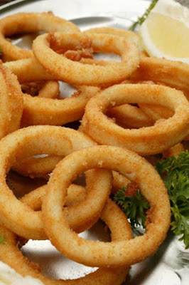 Squid is becoming a very popular food all around the world and i love calamari, especially when it's deep fried. Calamari is deep-fried battered squid. It's normally served on its own as a starter or as a side dish . Calamari is normally served with a wedge of lemon or garnished with parsley, or sprinkled with Parmesan cheese. It can also be served with dips such as tartar sauce, ketchup or mayonnaise. I like to eat mine with a side salad topped with mozzarella cheese and a baked potato.
